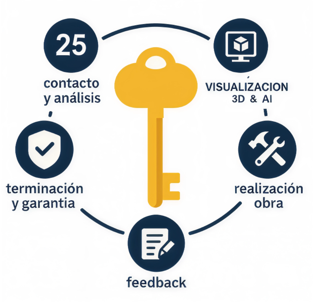 Combinamos mano de obra experta con visualización 3D e inteligencia artificial para optimizar cada proyecto, garantizando calidad superior y cumplimiento estricto de plazos.